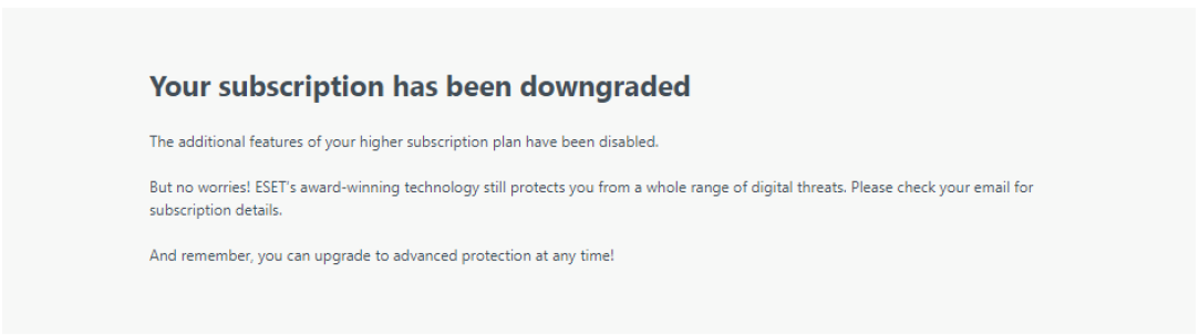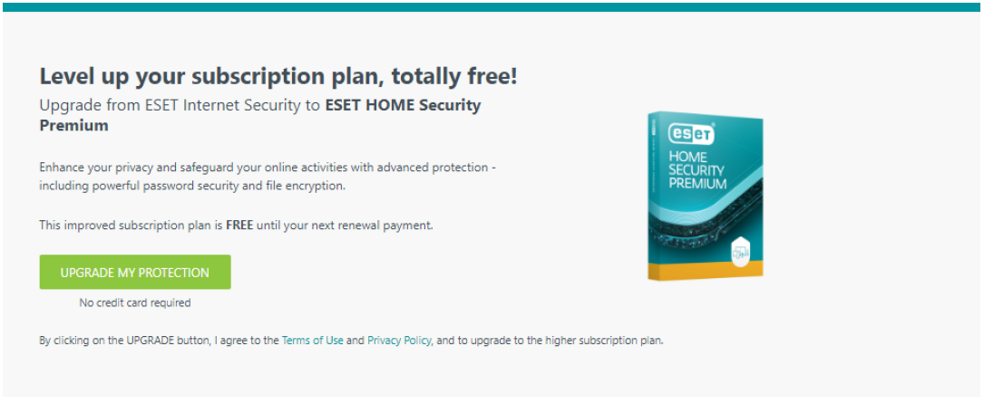 Ao clicar em “Upgrade My Protection” (Atualizar minha proteção) na página https://home.eset.com/upgrade/, ocorre o seguinte: